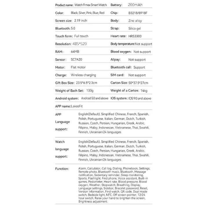 APP supports languages:English, Simplified Chinese, Traditional Chinese, Dutch, Russian, French, German, Portuguese, Spanish, Turkish, Japanese, Polish, Arabic, Malaysian, Thai, Czech, Slovak, Philippines, Indonesia, Ukraine, Vietnam, Italy, India, Finland, Croatia, Norway, Denmark, Sweden, Korean, Hungarian, Greek, PersianWatc